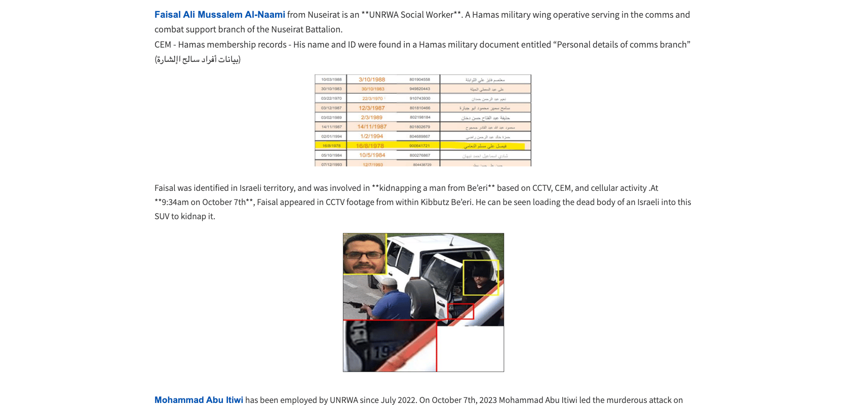 Also, here’s an official Israeli government site that lays out Israel’s claims and presents evidence (summaries, images and descriptions) of alleged links between UNRWA staff and Hamas: