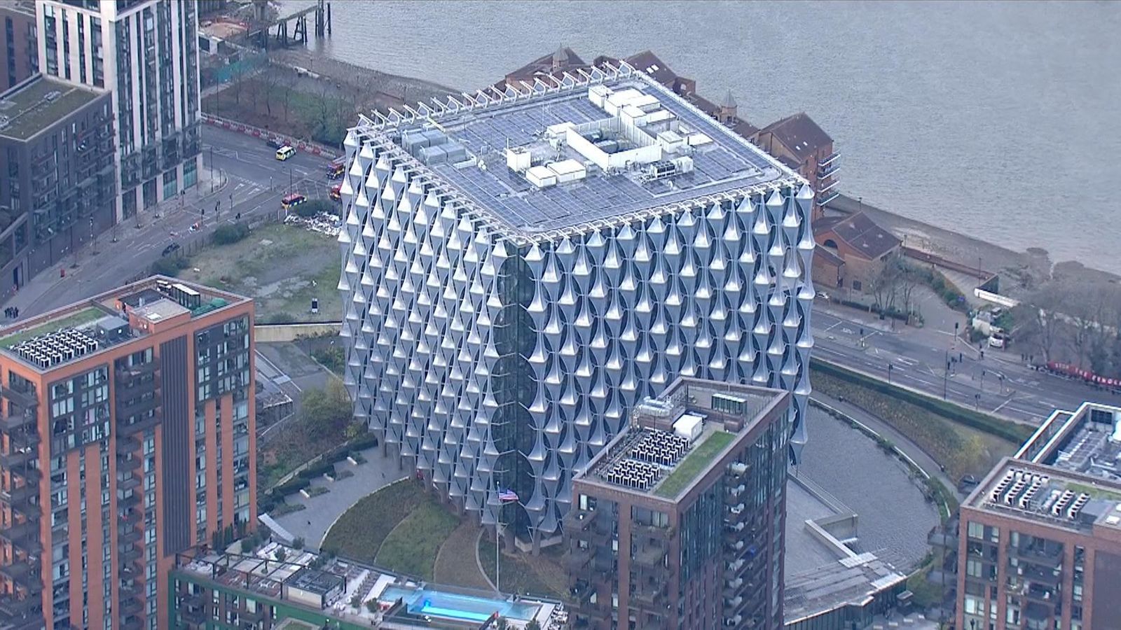 That said, this is the U.S. Embassy in London—also massive in scale. It cost roughly $1 billion to build and houses over 800 staff and 1,000 daily visitors.