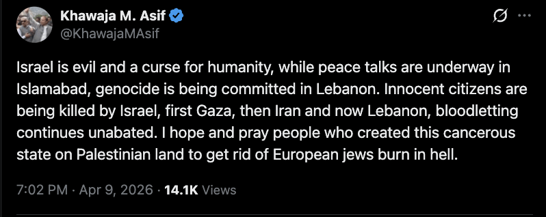 DM Khawaja Asif called Israel "evil," a curse for humanity, and cancerous.