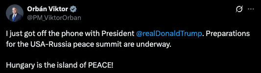 Orbán has repeatedly argued that Europe must stop "fanning the flames of endless war" and instead pursue negotiations with Russia.