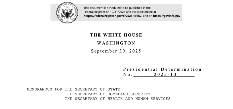 Note: The Presidential Determination setting the 7,500 cap was signed on Sept. 30 but only made available now.
