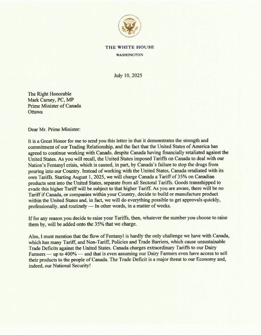 Today, his latest round of threats took aim at Canada, hitting it with a 35% tariff set to kick in on August 1.