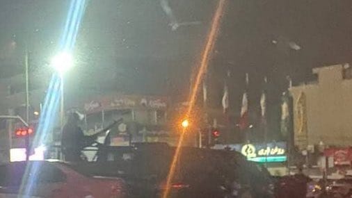 Image allegedly showing an Iranian forces member with a machine gun mounted on a truck, as previously reported.